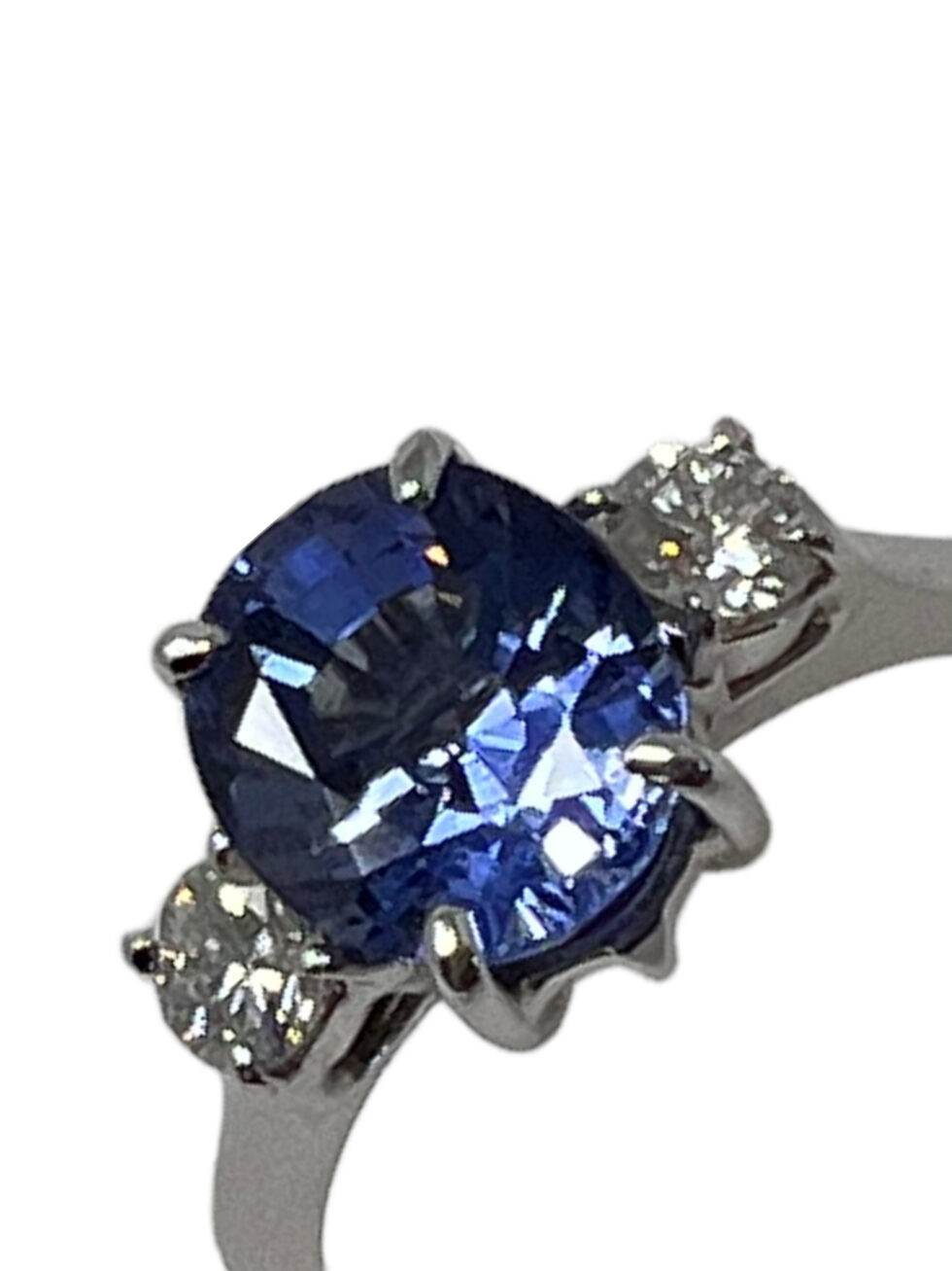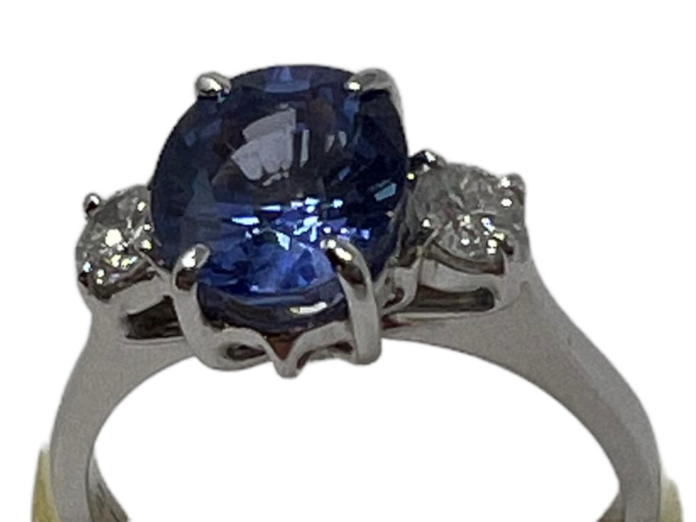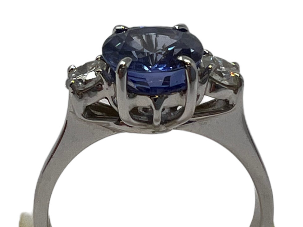 Anello in oro bianco 750/1000 con zaffiro e brillanti: zaffiro KT 2.76 – brillanti KT 0.30